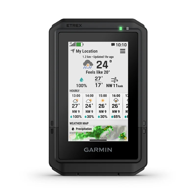 El dispositivo de mano eTrex Touch se ha diseñado específicamente con una clasificación de resistencia al agua IP67 y un diseño resistente a impactos (MIL-STD-810) para soportar condiciones meteorológicas adversas y entornos difíciles.