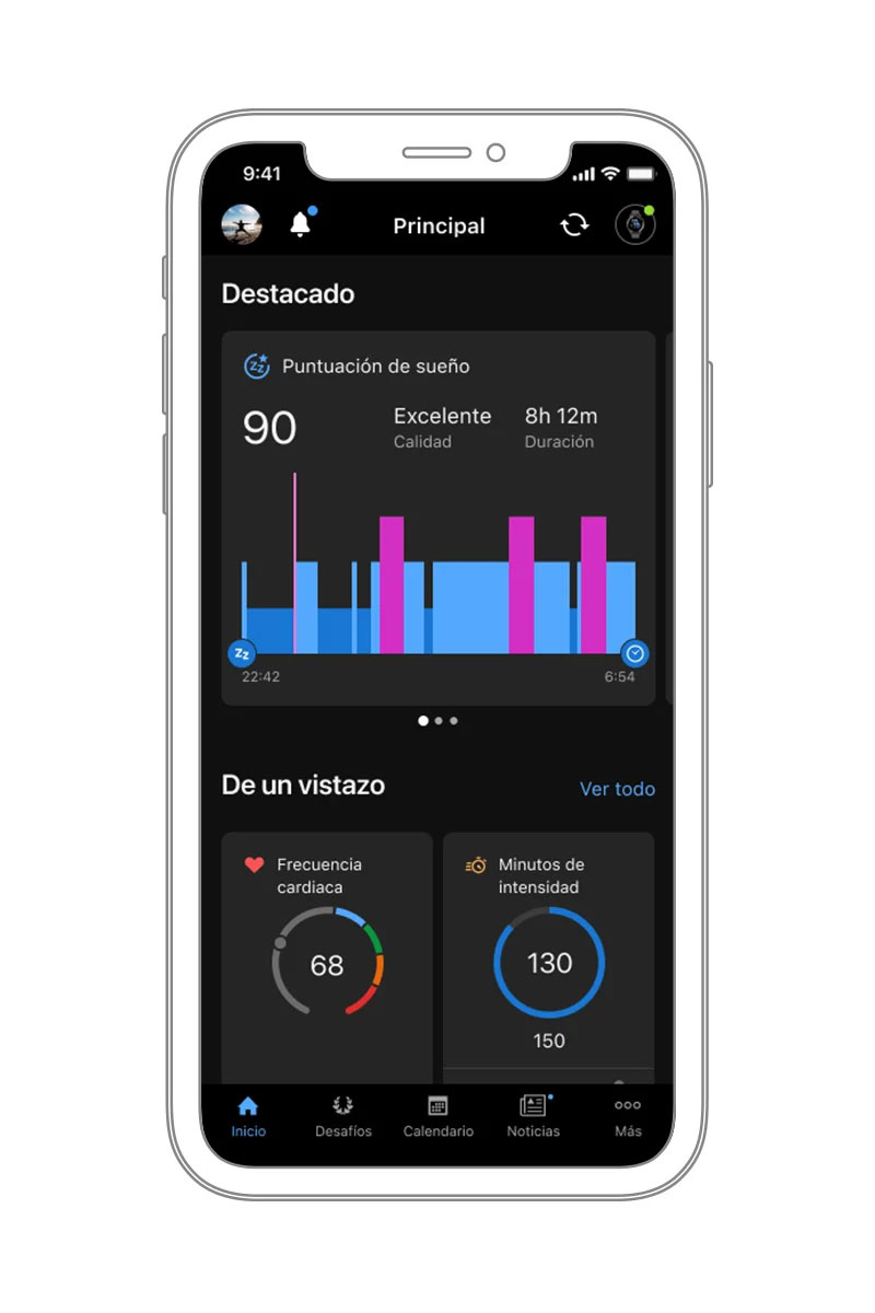 Consulta tus niveles de energía para saber cuándo tu cuerpo está descansado o necesita más reposo. Si llevas puesto un smartwatch compatible durante el día, podrás hacerte una idea más completa de tus niveles de energía, tanto de día como de noche.
